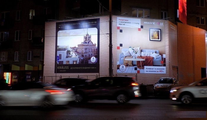 Разместим Вашу рекламу в центре Киева. Представленный брандмауэр расположен в районе важной транспортной артерии города Киева, по ул. Жилянской, 101а. Рекламная конструкция отлично просматривается с Воздухофлотского проспекта.